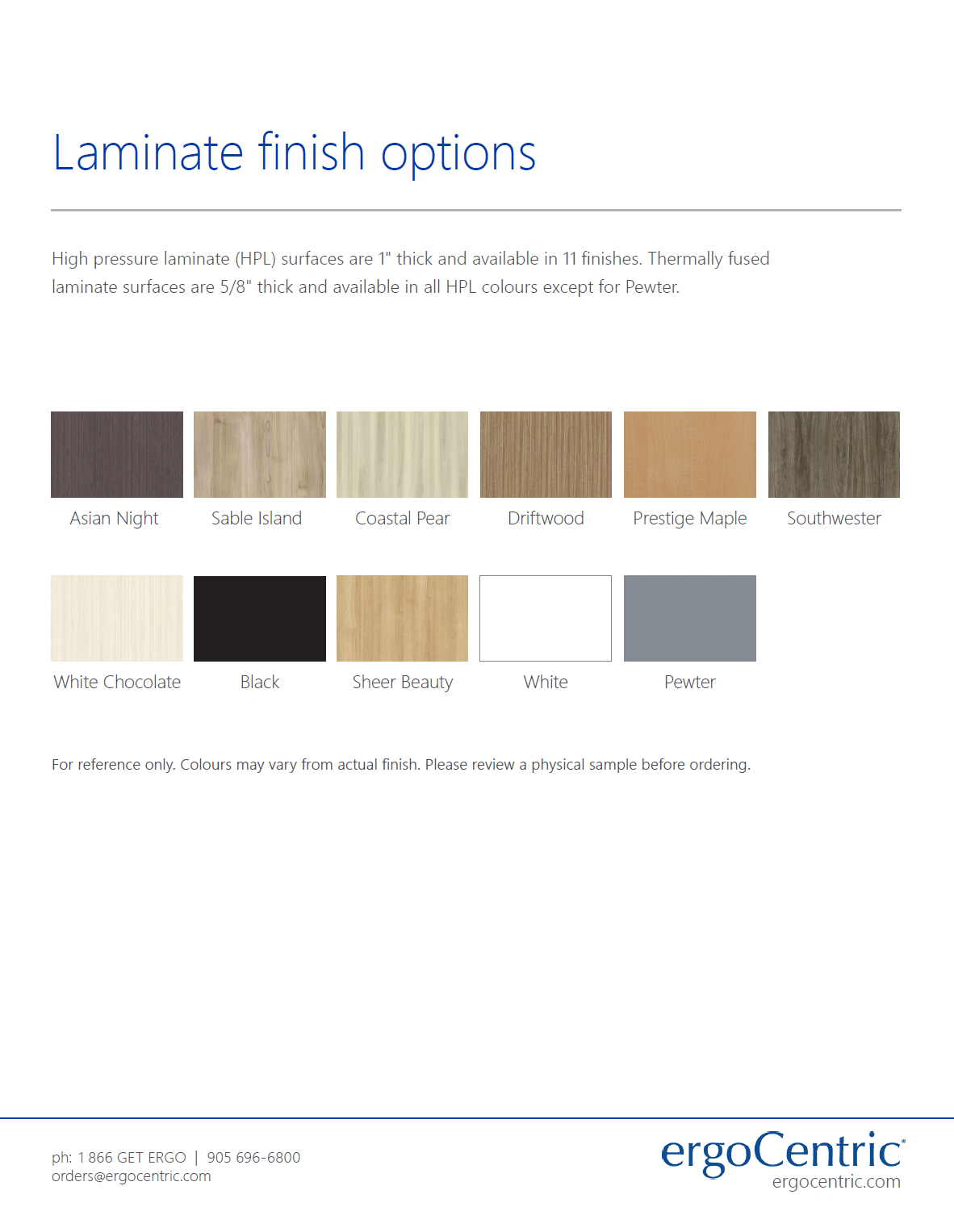 High pressure laminate tabletop finish options.